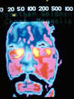 . Estas cuatro fotografías de calor termográficas fueron tomadas cantando armonías vocales. Se midieron los cambios de temperatura de la piel cuando uno está relajado entonando y se demostró que la temperatura de la piel se eleva . Hay una relación importante entre los cambios de temperatura de la piel y los cambios en los órganos detrás o debajo de la piel con respecto a estas fotografías, evidenciando modificaciones en el cerebro. Este rápido cambio en la temperatura de la piel también puede indicar cambios en la energía del chakra asociado con un área. Estas fotos muestran como las vibraciones sonoras influyen en la ceja o chakra ajna.